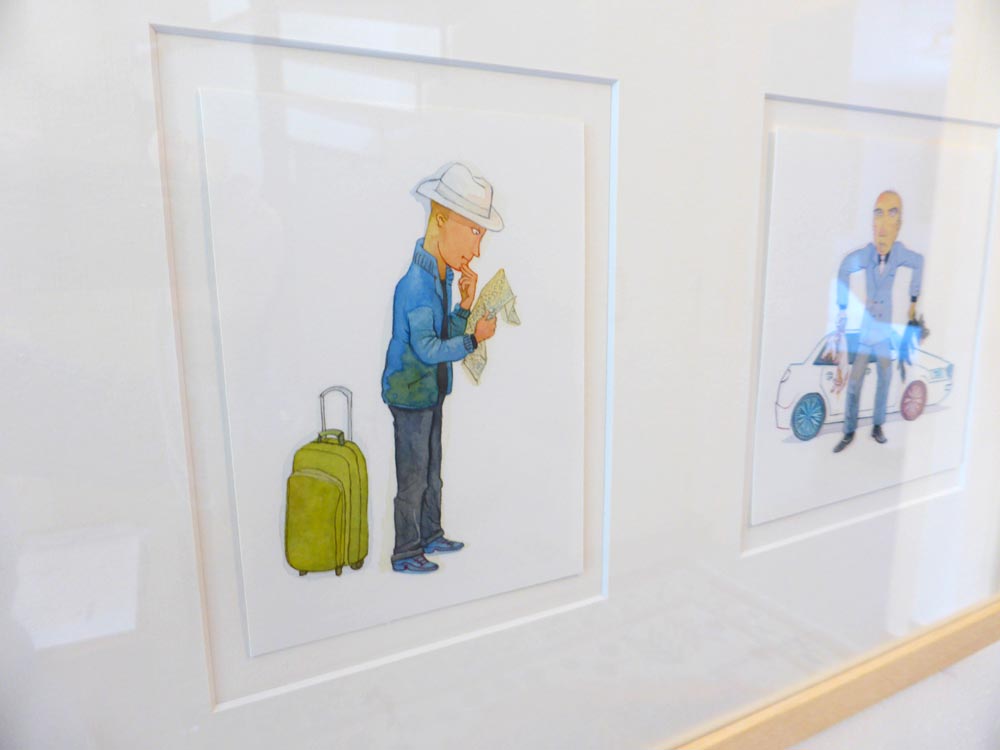 Esta muestra exhibe la colección de acuarelas originales del libro, así como otros materiales gráficos y escritos que sirvieron dentro del proceso de gestación tales como, bocetos, croquis, maquetas, calcos y todo tipo de objetos que proceden directamente del estudio de sus creadores y que fueron utilizados en la realización del arte final: caja de acuarelas, pinceles, papeles, etc. También se incluyen fotografías del registro paso a paso en la realización de las acuarelas.